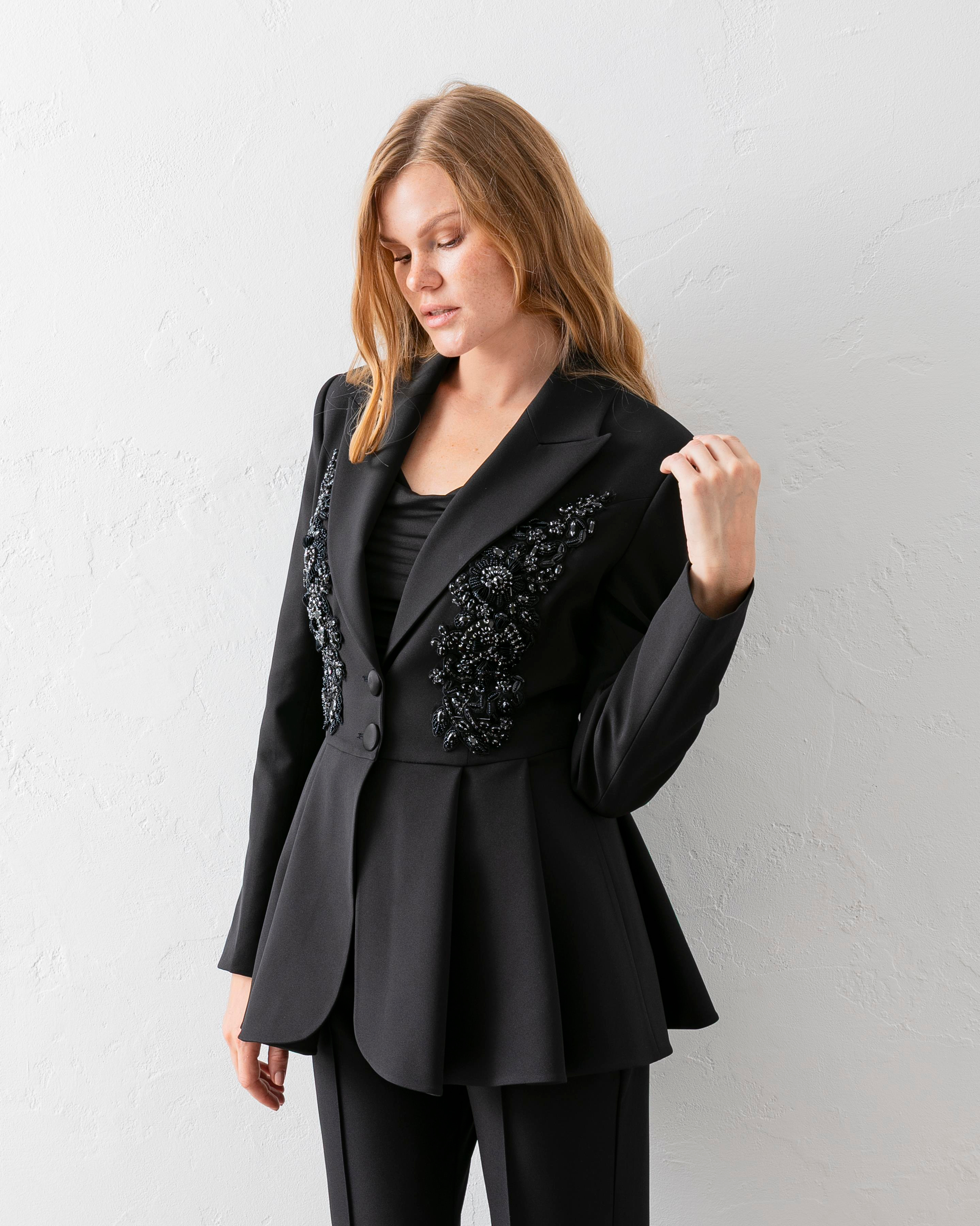 El İşlemeli Volanlı Blazer Pantolonlu İkili Takım