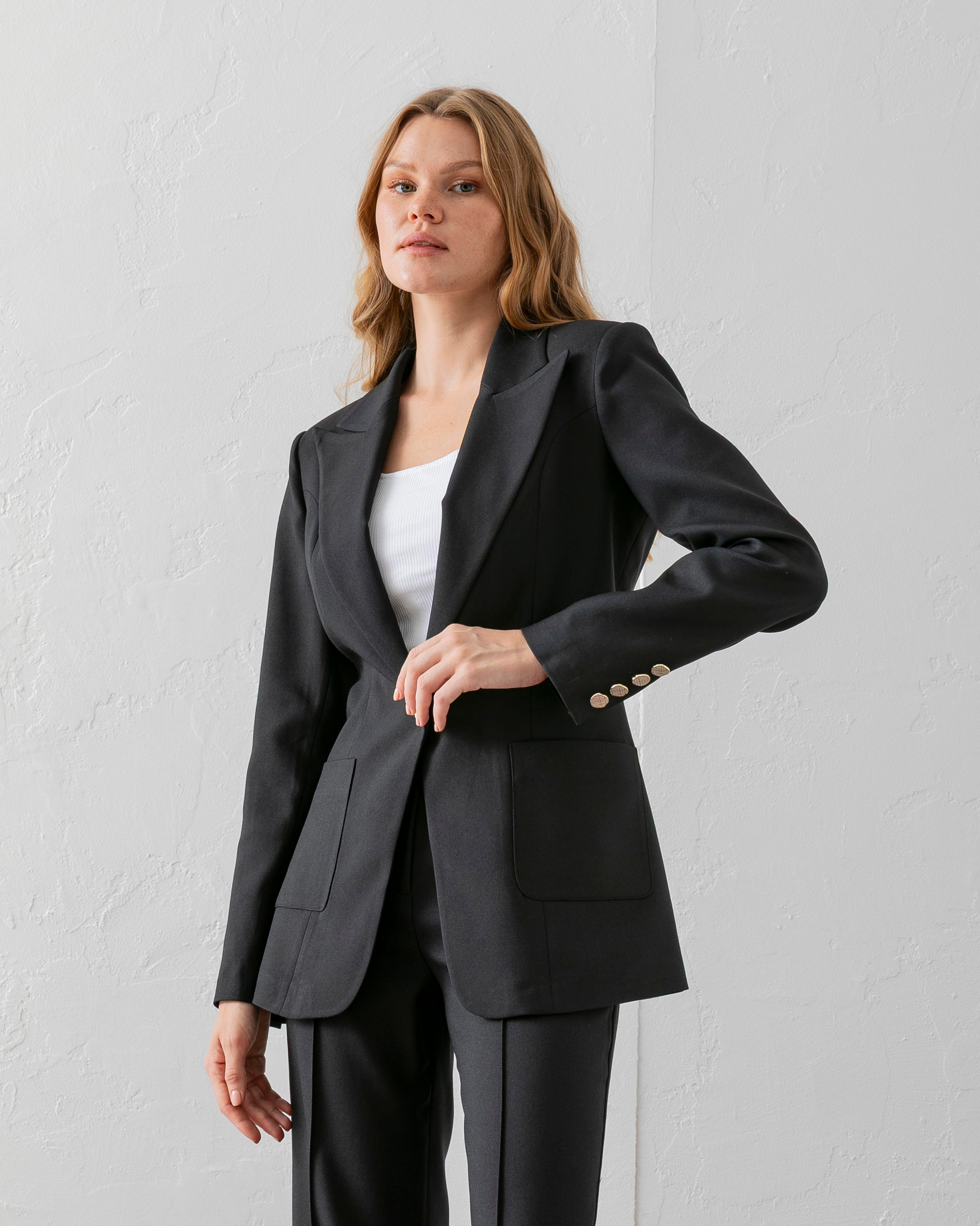 Çift Cepli Poliviskon Blazer Ceket