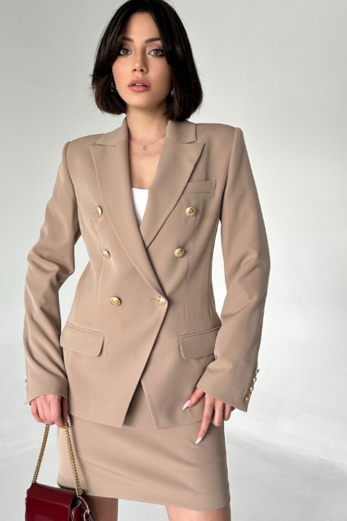 METAL DÜĞMELİ BLAZER İKİLİ ETEK TAKIM